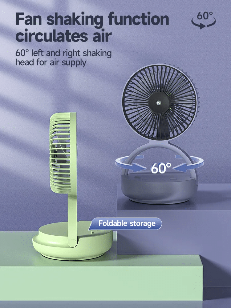 â Energy-Efficient: The Portable Rechargeable Fan is designed to be energy-efficient. It provides high performance while conserving energy.