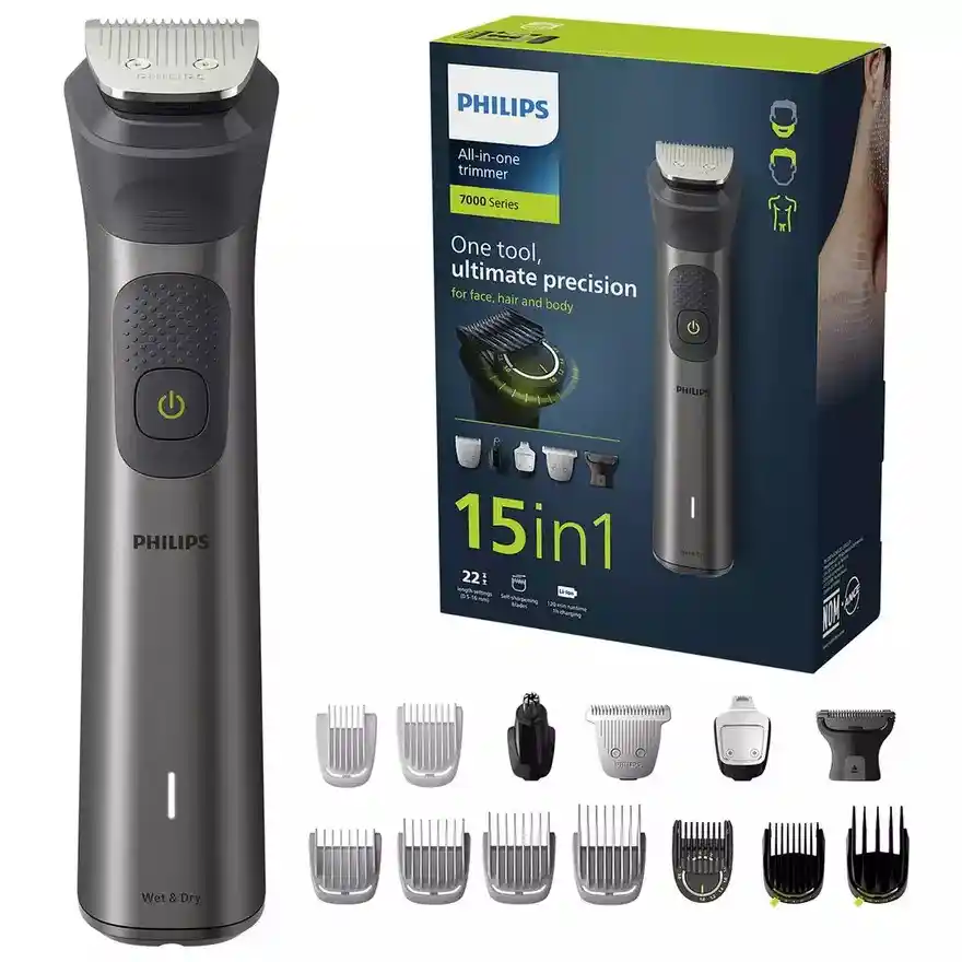 The Philips MG7940/15 Series 7000 is a premium 15-in-1 all-in-one grooming trimmer designed for complete face, hair, and body grooming. With powerful performance, multiple attachments, and precision trimming technology, this trimmer allows you to maintain your style easily at home.